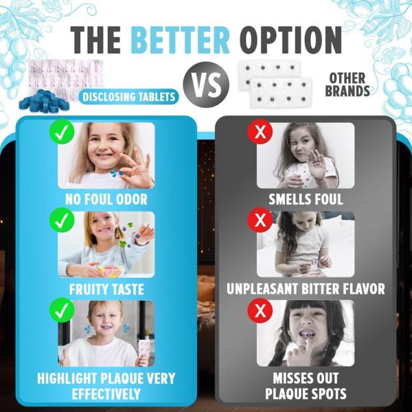 Fun Blue Color & Grape Flavor:Kids will surely love these tooth tablets in a fun blue shade. The dental plaque tablets also have an enjoyable grape flavor for a more pleasant gargling or chewing experience.